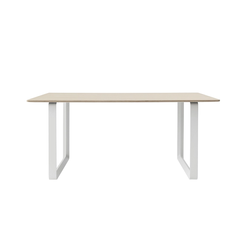 70/70 est une table au design minimaliste, aux lignes légères et à la silhouette aérienne. Le plateau est réalisé en contreplaqué avec une finition stratifiée, linoleum ou chêne. Le piètement est formé de deux cadres carrés en fonte d'aluminium de 70 x 70, d'où son nom. Inspirée de l'esthétique scandinave sobre et élégante, c'est une table au design épuré mais dotée de détails subtils qui font toute la différence. Disponible en plusieurs dimensions et finitions, la table 70/70, éditée par Muuto, est idéale pour une salle à manger ou un bureau.