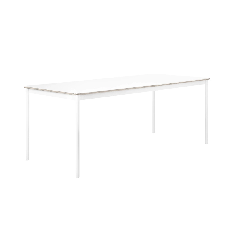 La Base Table éditée par Muuto se distingue par sa simplicité. Visuellement, elle incarne l'archétype d'une table, tel le dessin d'un enfant. Cette simplicité en fait une base parfaite pour réaliser une table avec un cadre en aluminium extrudé qui la rend parfaite pour des environnements professionnels et privés. Le plateau est disponible en laminé blanc, linoléum noir ou en chêne et le bord est en contreplaqué. Avec une attention particulière portée aux détails et à la qualité, Muuto produit une table qui résiste à une utilisation quotidienne pour vos repas. La simplicité apparente, la légèreté, la versatilité et la construction de haute qualité font de cette table une pièce de mobilier intemporelle à placer dans la salle à manger.