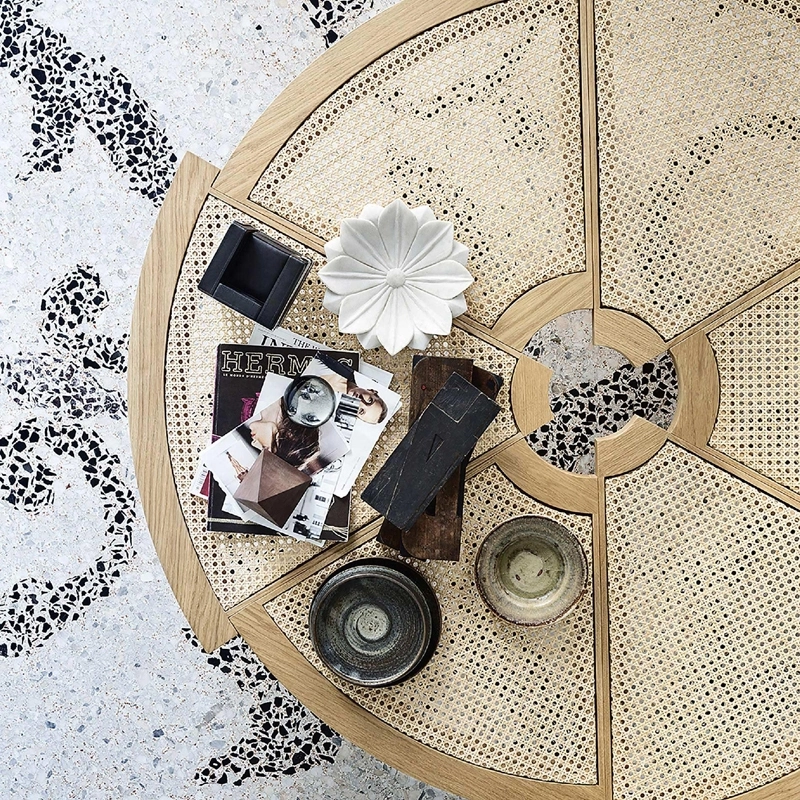 Rio a été conçue à l'origine par Charlotte Perriand en 1962 pour la maison d'un particulier au Brésil. Cassina la réédite par la suite et nous présente cette spectaculaire table basse construite à partir de six sections de différents rayons en marbre ou en rotin avec un bord extérieur en bois. Six pieds fabriqués à partir du même bois forment la base de la table. Avec sa forme à la fois ronde et asymétrique, la table Rio séduit par son originalité et représente une des créations les plus poétiques de la designer.