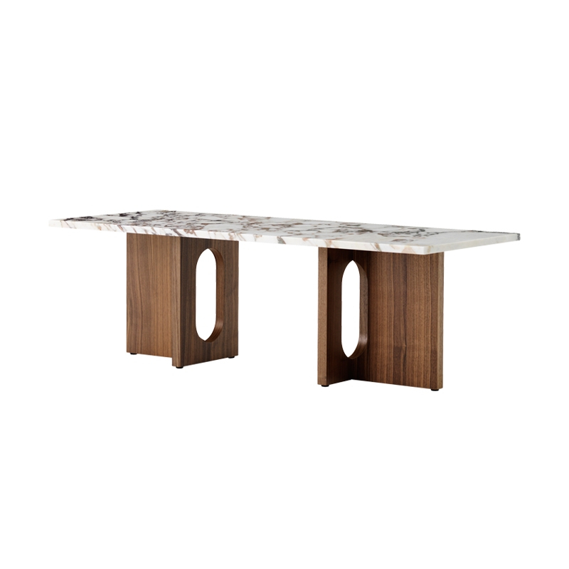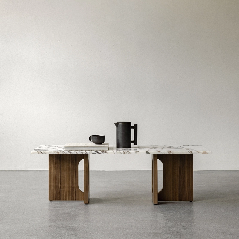 Androgyne a été conçue dans un premier temps par Danielle Siggerud pour le café Menu Space, mais elle s'est très vite distinguée par sa silhouette ludique et élégante. Célébrant l’artisanat, la table basse Androgyne est disponible en chêne naturel ou foncé, en noyer, en marbre Calacatta Viola ou en pierre Kunis Breccia, mais aussi avec une base bois, combinée à un plateau en pierre. Avec ses proportions généreuses, ses formes simples et ses différentes finitions, la table basse Androgyne Menu s’intègre facilement dans tous les salons, apportant une touche d’élégance. Elle peut également être utilisée en tant que petit banc pour y exposer des livres ou des petits objets.