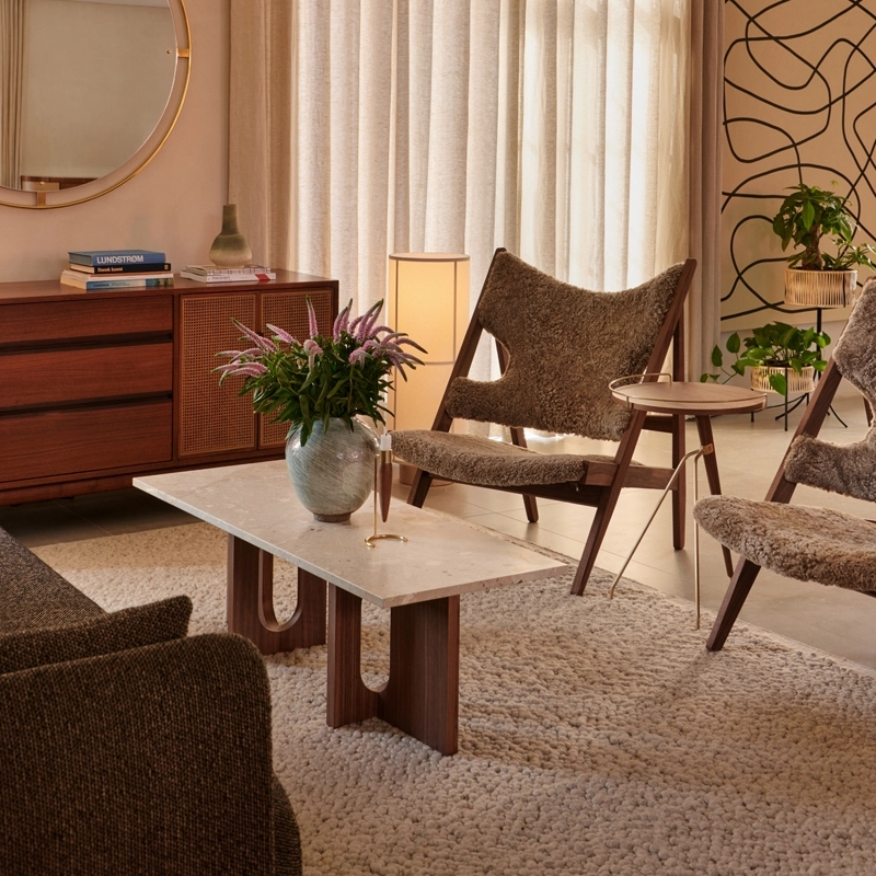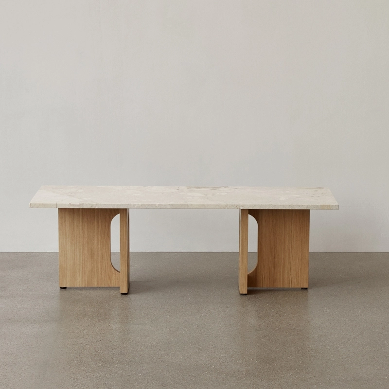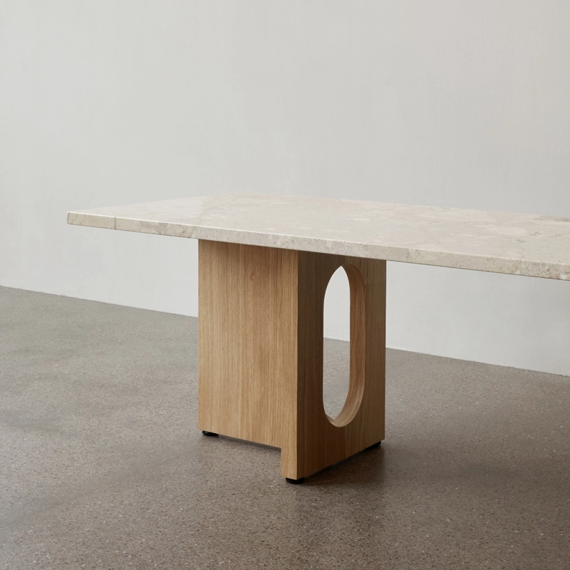Androgyne a été conçue dans un premier temps par Danielle Siggerud pour le café Menu Space, mais elle s'est très vite distinguée par sa silhouette ludique et élégante. Célébrant l’artisanat, la table basse Androgyne est disponible en chêne naturel ou foncé, en noyer, en marbre Calacatta Viola ou en pierre Kunis Breccia, mais aussi avec une base bois, combinée à un plateau en pierre. Avec ses proportions généreuses, ses formes simples et ses différentes finitions, la table basse Androgyne Menu s’intègre facilement dans tous les salons, apportant une touche d’élégance. Elle peut également être utilisée en tant que petit banc pour y exposer des livres ou des petits objets.