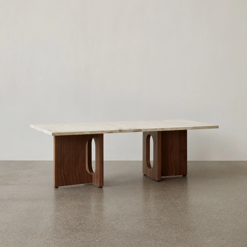 Androgyne a été conçue dans un premier temps par Danielle Siggerud pour le café Menu Space, mais elle s'est très vite distinguée par sa silhouette ludique et élégante. Célébrant l’artisanat, la table basse Androgyne est disponible en chêne naturel ou foncé, en noyer, en marbre Calacatta Viola ou en pierre Kunis Breccia, mais aussi avec une base bois, combinée à un plateau en pierre. Avec ses proportions généreuses, ses formes simples et ses différentes finitions, la table basse Androgyne Menu s’intègre facilement dans tous les salons, apportant une touche d’élégance. Elle peut également être utilisée en tant que petit banc pour y exposer des livres ou des petits objets.