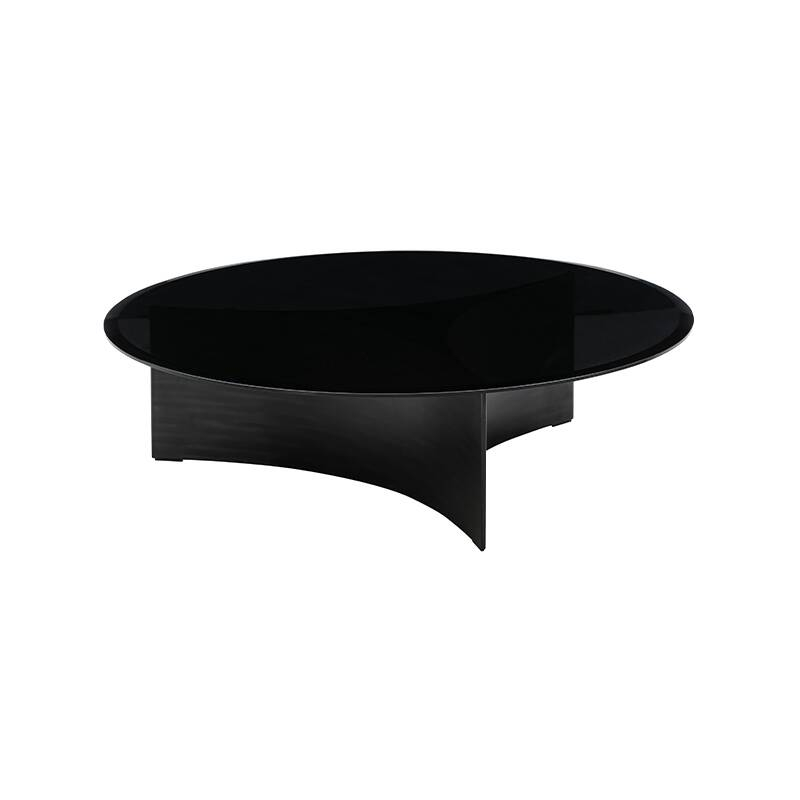 plateau verre trempé fumé ou noir, base acier patiné laiton ou noir