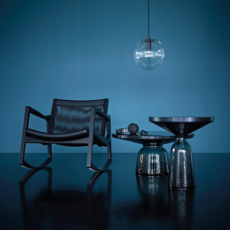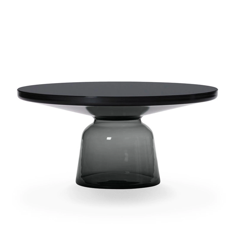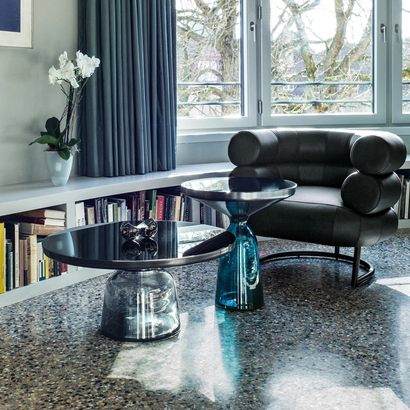 La collection Bell Table de Sebastian Herkner bouleverse l'usage habituel des matériaux en associant le verre, matériau léger et fragile utilisé pour la base, et un plateau réalisé en métal, qui semble flotter au-dessus. Le piétement en verre teinté est soufflé de façon traditionnelle dans un moule en bois. Avec sa présence sculpturale, il contraste avec le cadre en laiton tout en formant une unité harmonieuse rappelant les courbes d'une cloche. Grâce à ses surfaces réfléchissantes et ses matériaux opposés, la Bell Table ajoute une touche raffinée et délicate dans le salon. Elle célèbre la beauté des matériaux avec leurs couleurs et leurs formes, associées aux qualités d'un travail artisanal rigoureux. La table basse Bell Coffee et la table d'appoint Bell Side sont des pièces uniques et fragiles, chacune étant réalisée intégralement à la main et éditée par Classicon.