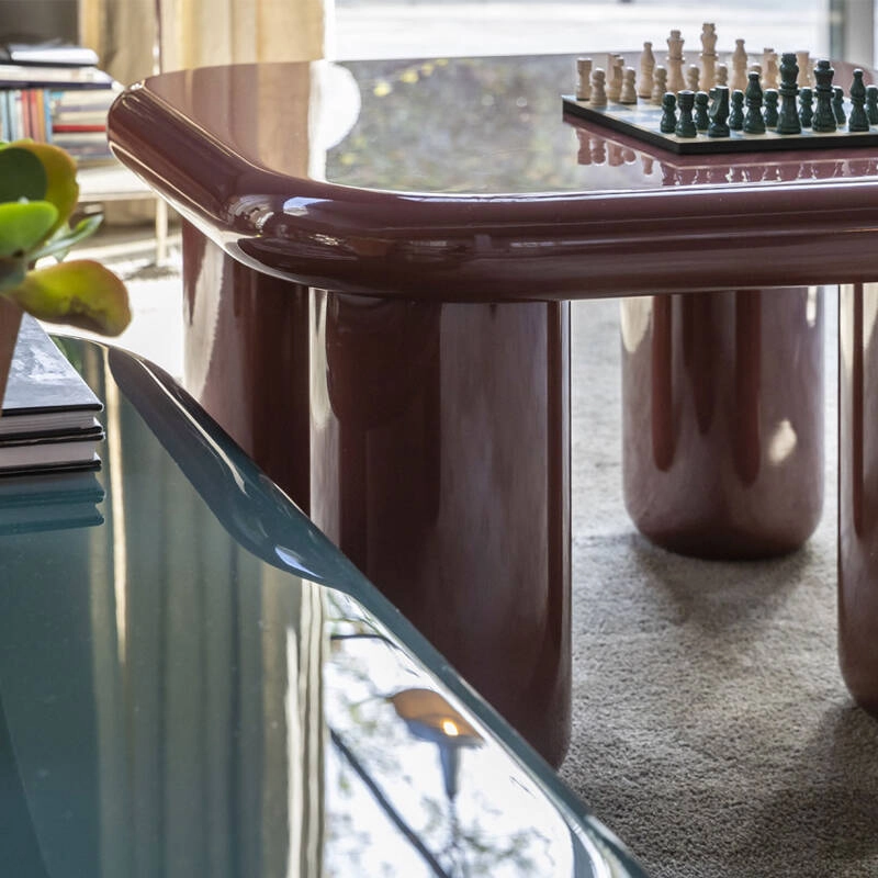 La collection Bilbao se décline en plusieurs tables de différentes dimensions. Chaque table se compose d’un plateau en bois alvéolaire, maintenu par de solides pieds en polyuréthane, puis l’ensemble de la table est revêtu d’une finition laque brillante.