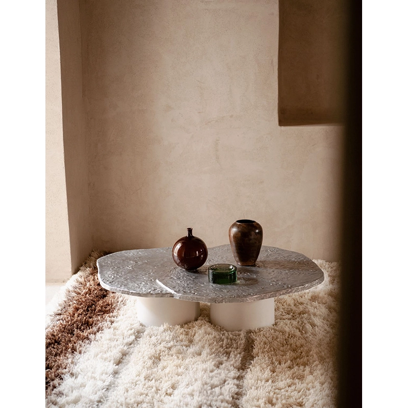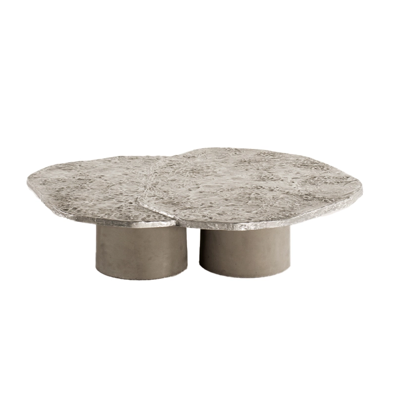 La table basse Brut, de Roberto Sironi pour Tacchini, est une pièce qui fait référence à l’art brut, spontané, informel et à l’architecture brutaliste. Ses volumes imposants et accentués font de cette table basse une pièce maitresse du salon. La table basse Brut possède un plateau en fonte d’aluminium et des pieds en bétons, qui la rendent plus solide. Le matériau domine les formes et donne vie à une pièce fière et charismatique. La table basse Brut de Tacchini rend toute pièce élégante et s’accorde parfaitement à un décor contemporain.