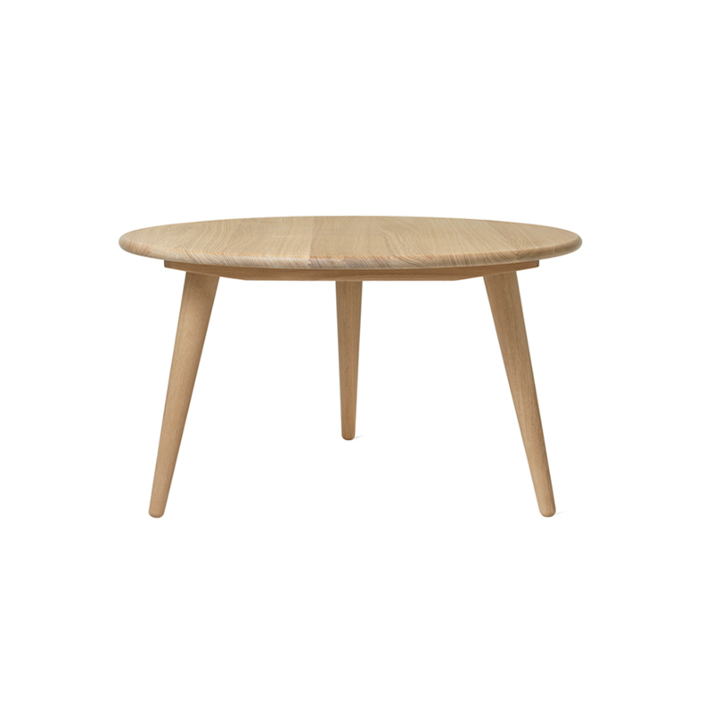La table basse CH008 est un bel exemple du penchant de Hans J. Wegner pour des solutions simples, claires et intéressantes. CH008 de Carl Hansen  se compose d'un plateau rond sur un cadre avec trois pieds coniques amovibles. Faisant le lien entre le plateau et les pieds, la table basse est dotée d'un cadre triangulaire massif, dont les coins sont coupés en biais au bord du plateau. Les pieds sont vissés dans ces surfaces pour obtenir leur direction inclinée vers l'extérieur. L'arrondi des pieds donne à la table basse un aspect élégant et presque flottant. Réalisée en bois massif, la table basse CH008 se marie particulièrement bien avec d'autres célèbres pièces de Wegner, en particulier ses fauteuils. Avec seulement 3 pieds, la table basse CH008 est également bien adaptée aux sols légèrement inégaux. La table basse CH008 Carl Hansen est disponible en plusieurs diamètres et différentes hauteurs.