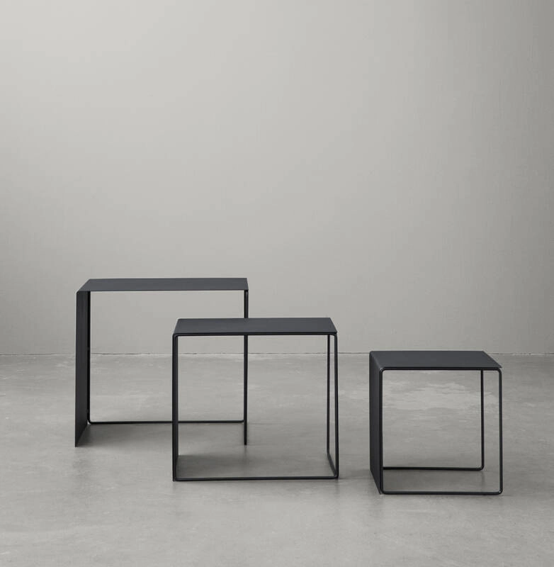 Conçu par Trine Andersen pour la marque Ferm Living, Cluster est un ensemble de trois petites table gigognes dotées d'un design minimaliste et intemporel. Les pieds fins contrastent avec les surfaces pleines en métal, tout en créant un ensemble graphique. Fabriquées en métal enduit de poudre, les tables sont relativement légères, non seulement dans leur aspect mais notamment quand il s'agit de les déplacer et jouer avec les nombreuses combinaisons qu'elle permettent. Cluster est composé de trois tables autoportantes qui peuvent être disposés ensemble ou séparément dans différentes pièces de la maison.