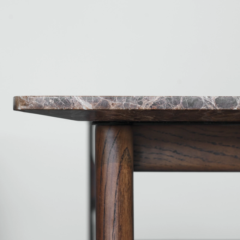 marbre emperador, chêne massif et contreplaqué de chêne certifiés fsc marron foncé