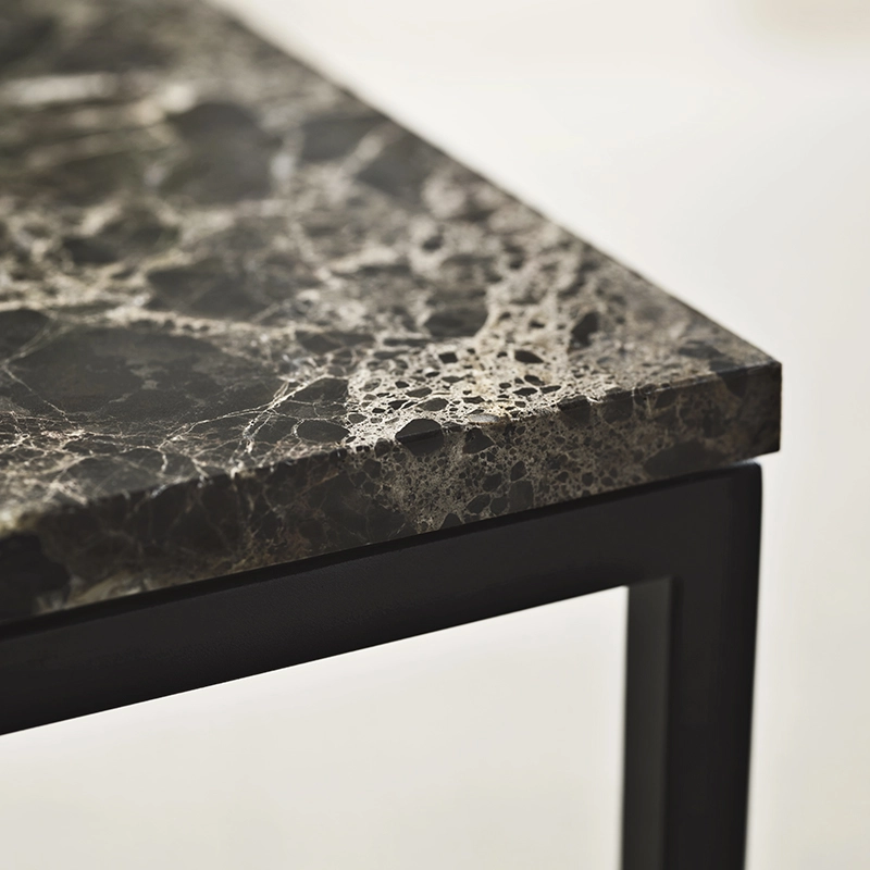 plateau marbre, pieds acier laqué noir