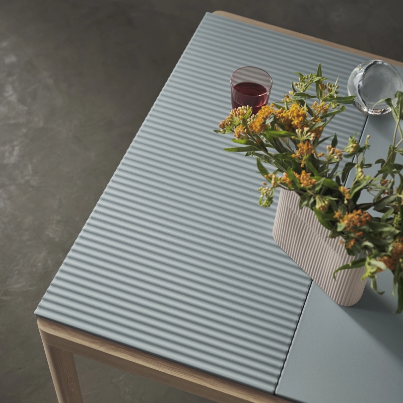 Inspirée de la traditionnelle table en carreaux de céramique, la table basse Couple de Muuto est une fusion raffinée de matériaux. Le piètement en chêne massif certifié FSC sont surmontés de superbes plateaux en grès de cérame, assurant à la fois esthétisme et qualité.  La table basse Couple est constituée de grands plateaux rectangulaires disponibles en deux finitions différentes : lisses ou ondulés. L’assemblage des plateaux de la table basse Couple de Muuto permet un jeu de textures, alternant surfaces lisses et surfaces sculptées par les ondulations qui forment de légers reliefs, traçant des lignes fortes et sculpturales. Choisissez votre table basse Couple parmi 36 variantes préétablies couvrant trois tailles et finitions différentes. Les mots du designer Sylvain Willenz : "La table basse Couple est née de mes recherches sur cette pièce de mobilier traditionnelle et essentielle. Je voulais proposer une vision nouvelle et subtile de ces matériaux et de cette typologie. J'étais inspiré par la matérialité de la céramique comme la brique et la terre cuite, constatant qu’une belle synergie s'opère quand elle est combinée avec du bois. J'ai toujours été attiré par la texture et je voulais un design au caractère intrinsèquement tactile, produit par le toucher granuleux de la surface des carreaux de céramique. Le design des tables Couple permet de choisir et combinez des carreaux lisses ou ondulés. Grâce à ses matériaux, ses finitions et ses détails de conception raffinés, la table basse Couple fusionne subtilement un meuble familier avec des fonctionnalités avant-gardistes."