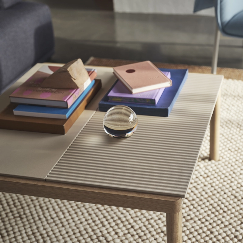 Inspirée de la traditionnelle table en carreaux de céramique, la table basse Couple de Muuto est une fusion raffinée de matériaux. Le piètement en chêne massif certifié FSC sont surmontés de superbes plateaux en grès de cérame, assurant à la fois esthétisme et qualité.  La table basse Couple est constituée de grands plateaux rectangulaires disponibles en deux finitions différentes : lisses ou ondulés. L’assemblage des plateaux de la table basse Couple de Muuto permet un jeu de textures, alternant surfaces lisses et surfaces sculptées par les ondulations qui forment de légers reliefs, traçant des lignes fortes et sculpturales. Choisissez votre table basse Couple parmi 36 variantes préétablies couvrant trois tailles et finitions différentes. Les mots du designer Sylvain Willenz : "La table basse Couple est née de mes recherches sur cette pièce de mobilier traditionnelle et essentielle. Je voulais proposer une vision nouvelle et subtile de ces matériaux et de cette typologie. J'étais inspiré par la matérialité de la céramique comme la brique et la terre cuite, constatant qu’une belle synergie s'opère quand elle est combinée avec du bois. J'ai toujours été attiré par la texture et je voulais un design au caractère intrinsèquement tactile, produit par le toucher granuleux de la surface des carreaux de céramique. Le design des tables Couple permet de choisir et combinez des carreaux lisses ou ondulés. Grâce à ses matériaux, ses finitions et ses détails de conception raffinés, la table basse Couple fusionne subtilement un meuble familier avec des fonctionnalités avant-gardistes."