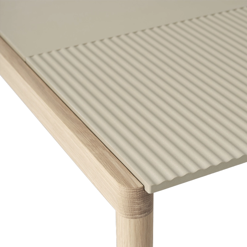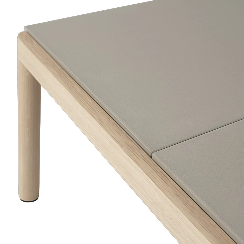 Muuto est une fusion raffinée de matériaux. Le piètement en chêne massif certifié FSC sont surmontés de superbes plateaux en grès de cérame, assurant à la fois esthétisme et qualité.