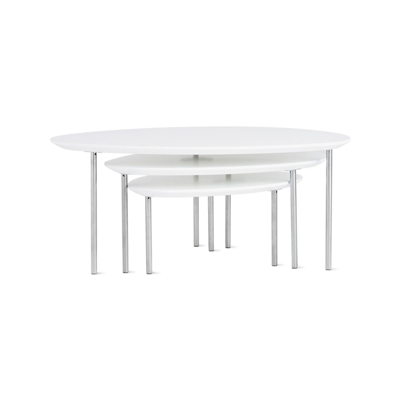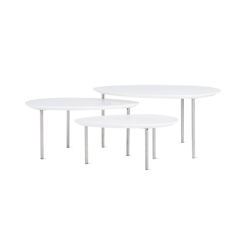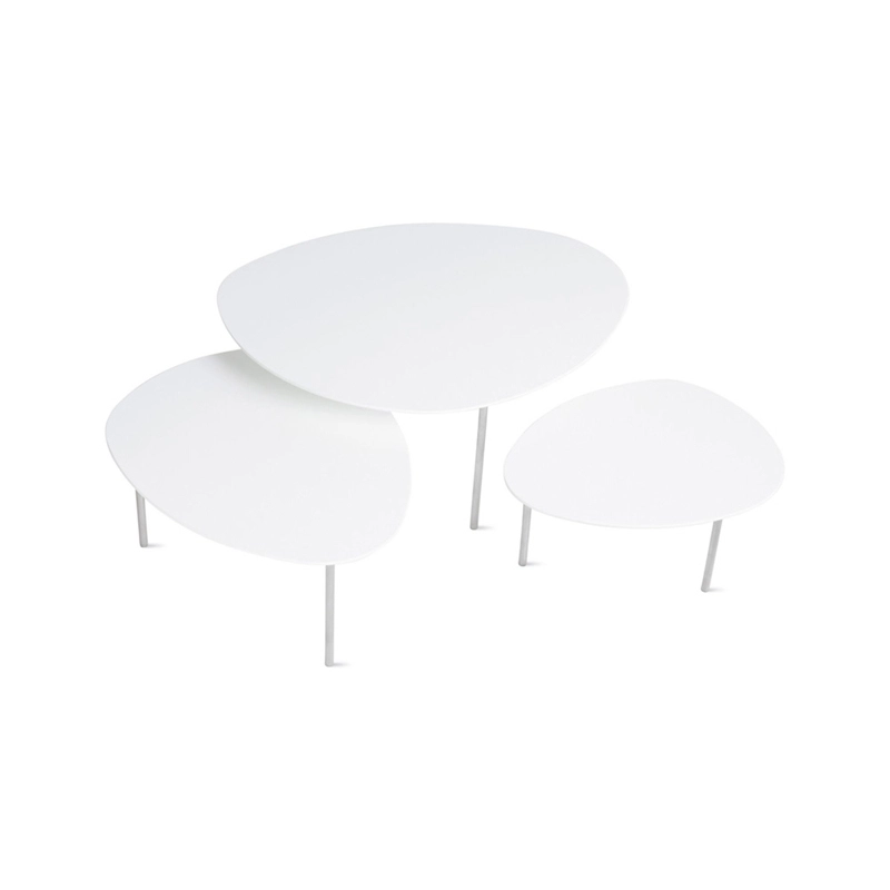 tables basses design de différentes formes, différentes tailles et différentes hauteurs. Interprétation contemporaine et poétique des traditionnelles tables gigognes, les tables Eclipse peuvent être rangées les unes sous les autres et disparaître, partiellement ou totalement, comme une éclipse. Les formes des tables sont complémentaires et peuvent être combinées librement, selon le goût ou l'humeur. Les plateaux des tables se déclinent en noyer naturel, wengé, chêne ou laqué blanc, les pieds sont en tube d'acier chromé. Vendue individuellement sa série de tables Eclipse, Jon Gasca s'est inspiré de formes organiques trouvées dans la nature. Editée par la marque Stua, la collection est composée de quatre tables basses de différentes formes, différentes tailles et différentes hauteurs. Interprétation contemporaine et poétique des traditionnelles tables gigognes, les tables Eclipse peuvent être rangées les unes sous les autres et disparaître, partiellement ou totalement, comme une éclipse. Les formes des tables sont complémentaires et peuvent être combinées librement, selon le goût ou l'humeur. Les plateaux des tables se déclinent en noyer naturel, wengé, chêne ou laqué blanc, les pieds sont en tube d'acier chromé. Vendue individuellement