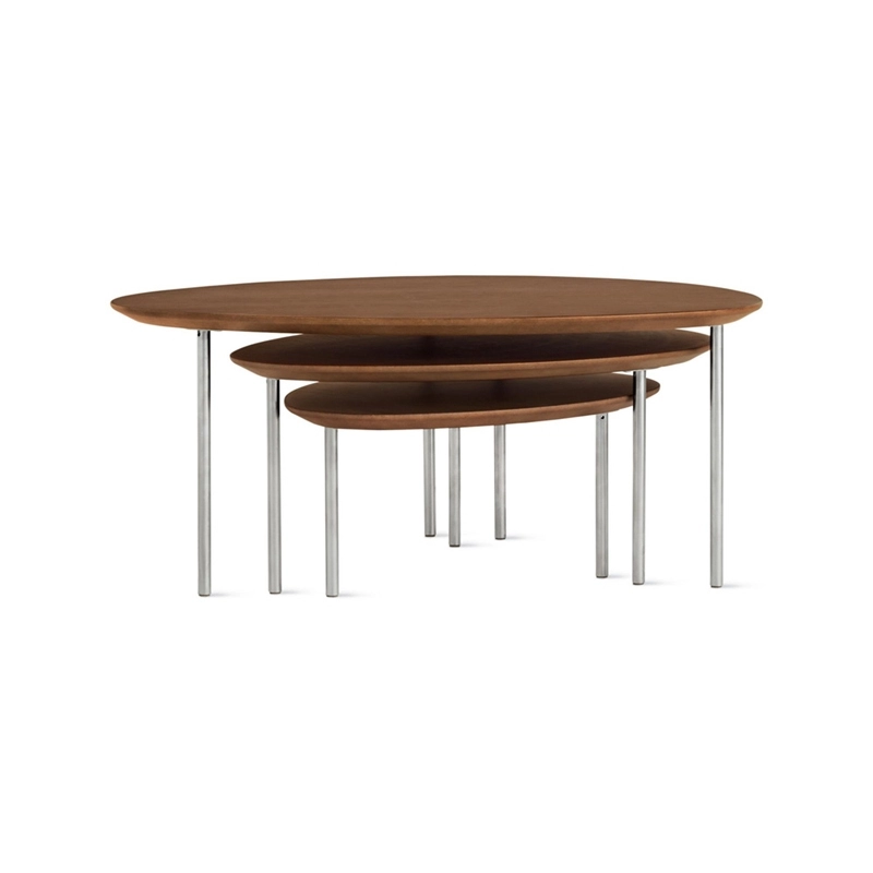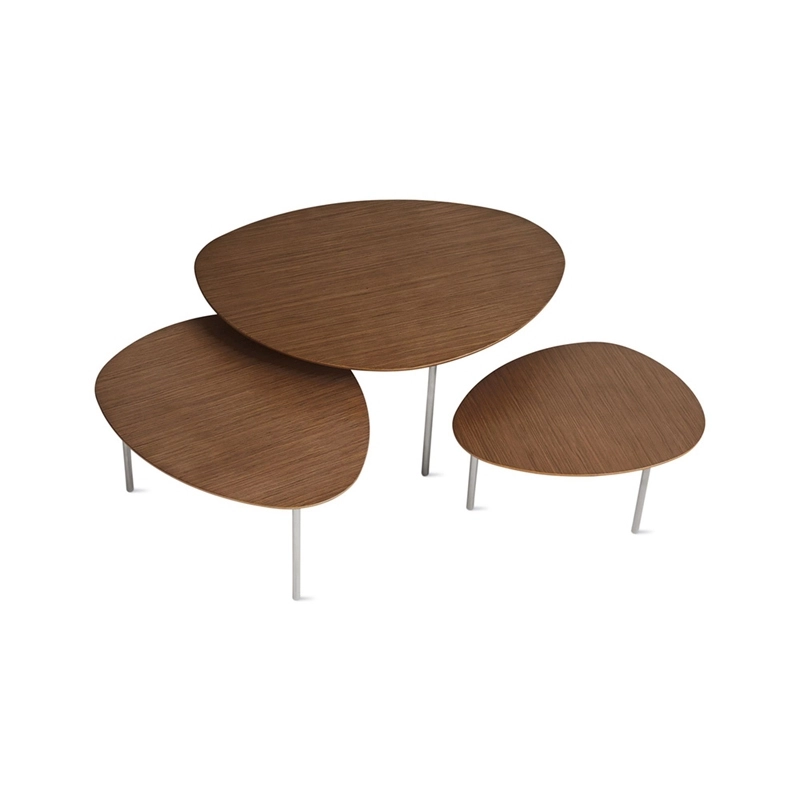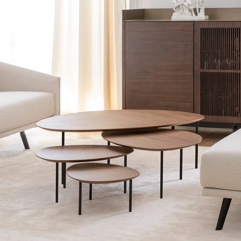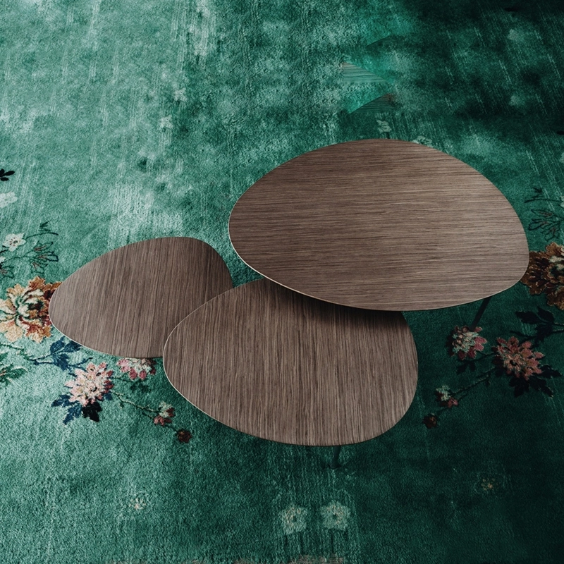 tables basses design de différentes formes, différentes tailles et différentes hauteurs. Interprétation contemporaine et poétique des traditionnelles tables gigognes, les tables Eclipse peuvent être rangées les unes sous les autres et disparaître, partiellement ou totalement, comme une éclipse. Les formes des tables sont complémentaires et peuvent être combinées librement, selon le goût ou l'humeur. Les plateaux des tables se déclinent en noyer naturel, wengé, chêne ou laqué blanc, les pieds sont en tube d'acier chromé. Vendue individuellement sa série de tables Eclipse, Jon Gasca s'est inspiré de formes organiques trouvées dans la nature. Editée par la marque Stua, la collection est composée de quatre tables basses de différentes formes, différentes tailles et différentes hauteurs. Interprétation contemporaine et poétique des traditionnelles tables gigognes, les tables Eclipse peuvent être rangées les unes sous les autres et disparaître, partiellement ou totalement, comme une éclipse. Les formes des tables sont complémentaires et peuvent être combinées librement, selon le goût ou l'humeur. Les plateaux des tables se déclinent en noyer naturel, wengé, chêne ou laqué blanc, les pieds sont en tube d'acier chromé. Vendue individuellement