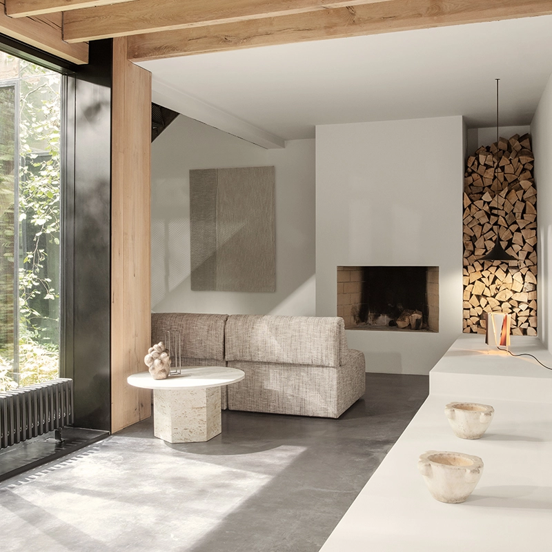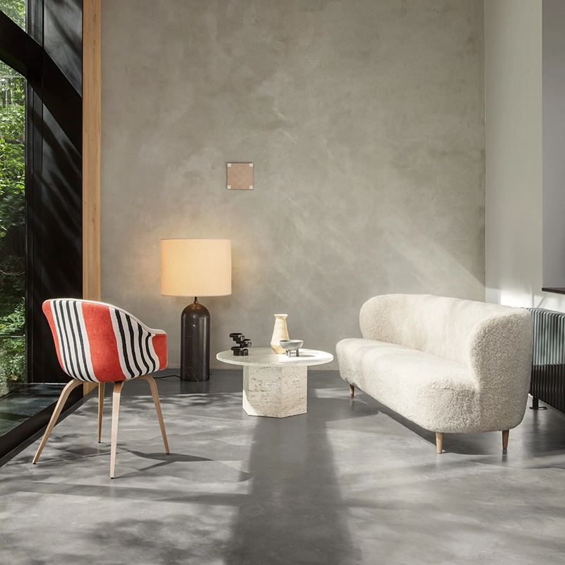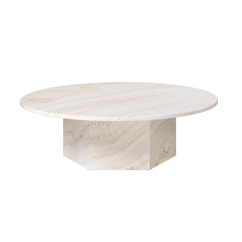 GamFratesi a conçu la table basse Epic pour Gubi comme un meuble sculptural inspiré par les colonnes grecques et l'architecture romaine et nommé d'après les poèmes épiques de l'Antiquité. Fabriquée en Italie à partir de pierre de travertin, la forme monolithique souligne la matérialité de la pierre, la beauté naturelle de ses veines et la texture vibrante de sa patine unique - dans laquelle un nouveau détail peut être découvert à chaque utilisation. Inspirée par des exemples historiques de constructions en travertin comme le Colisée et la Basilique Saint-Pierre de Rome, et par la renaissance de ce matériau dans les années 1970 en Europe du Sud, la table Epic combine deux formes géométriques simples, le cercle et l'hexagone, avec des références à la colonne grecque classique. Les options de pierre en Blanc Neutre, Gris Vibrant ou Rouge Brûlé coloré créent chacune un point focal d'intensité différente, apportant de la personnalité dans une maison et du naturel aux espaces publics. Les différentes hauteurs et diamètres de la série de tables Epic permettent de créer des compositions de plusieurs tables ou de les utiliser seules.
