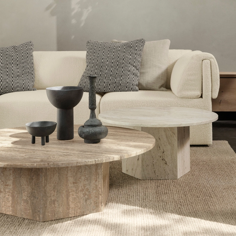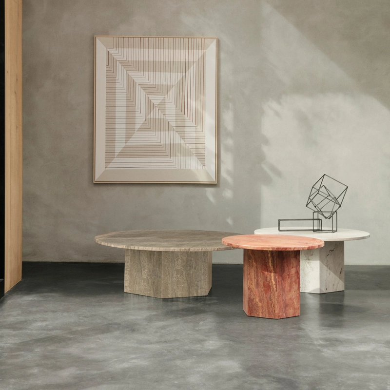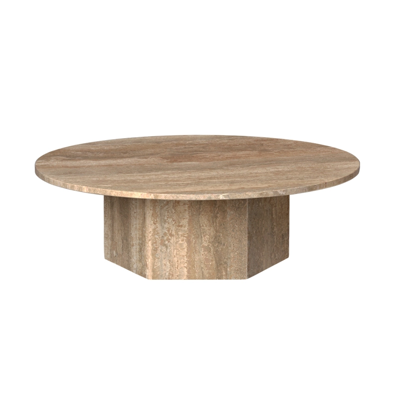 GamFratesi a conçu la table basse Epic pour Gubi comme un meuble sculptural inspiré par les colonnes grecques et l'architecture romaine et nommé d'après les poèmes épiques de l'Antiquité. Fabriquée en Italie à partir de pierre de travertin, la forme monolithique souligne la matérialité de la pierre, la beauté naturelle de ses veines et la texture vibrante de sa patine unique - dans laquelle un nouveau détail peut être découvert à chaque utilisation. Inspirée par des exemples historiques de constructions en travertin comme le Colisée et la Basilique Saint-Pierre de Rome, et par la renaissance de ce matériau dans les années 1970 en Europe du Sud, la table Epic combine deux formes géométriques simples, le cercle et l'hexagone, avec des références à la colonne grecque classique. Les options de pierre en Blanc Neutre, Gris Vibrant ou Rouge Brûlé coloré créent chacune un point focal d'intensité différente, apportant de la personnalité dans une maison et du naturel aux espaces publics. Les différentes hauteurs et diamètres de la série de tables Epic permettent de créer des compositions de plusieurs tables ou de les utiliser seules.