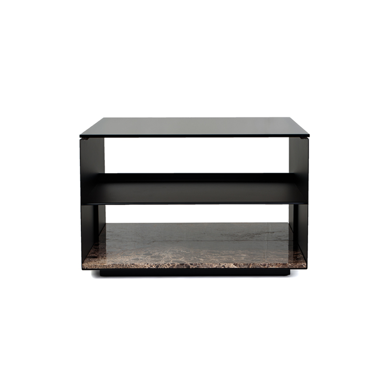 Expose est un concept de meubles multifonctionnel quelque part entre une table basse, un podium ou un piédestal, en bref une nouvelle façon d’exposer les objets de la maison. En dessinant cette collection, Jonas Wagell a voulu créer une table aux lignes claires, réalisée dans des matériaux exclusifs, sur laquelle on peut exposer des œuvres, des objets design, mais aussi y cacher les choses que l’on ne veut pas voir.  Le plateau en verre fumé repose sur une structure en acier, tandis qu’une dalle en marbre à la base apporte équilibre et stabilité. Entre le plateau et la base, une étagère en acier renforce l’ensemble et fournit un espace de rangement. L’étagère qui représente deux tiers des dimensions de la table permet de ranger de plus grands objets d’un côté, tels que des livres. Disponibles en trois tailles, ces tables graphiques et élégantes, éditées par Wendelbo, peuvent être utilisées séparément ou en compositions dynamiques.