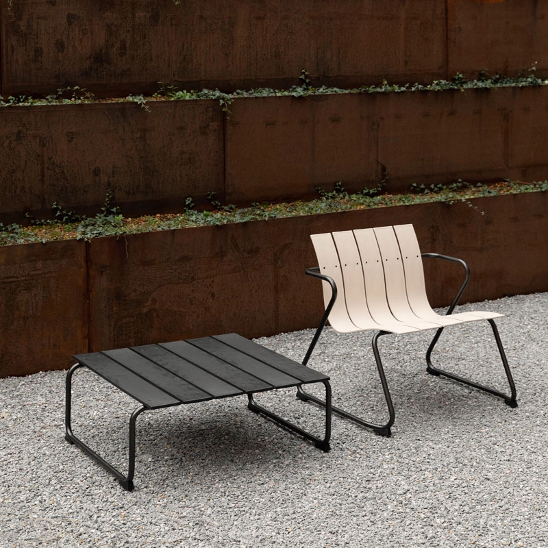 Editée par Mater, Ocean est une collection de meubles pour l’extérieur réalisés en filets de pêche. Créé à l’origine en 1955 par le célèbre couple danois, Nanna & Joergen Ditzel, le design a été réimaginé et réédité en utilisant des déchets plastiques trouvés dans les océans.  Composée de lattes qui se répètent et d’une base en métal, la collection Ocean se caractérise par sa structure légère, conçue et testée pour une utilisation extérieure. Cette conception représente une pensée innovante et durable, et soutient de nombreux objectifs de développement durable des Nations Unies. La collection Ocean Mater comprend une chaise, un banc, un fauteuil lounge, une table basse et deux tables de repas, tous déclinés en deux couleurs : noir et sable. Toutes les pièces de la collection Ocean peuvent être entièrement démontées, ce qui permet à chaque composant d’être recyclé dans de nouveaux cercles de production.  Des variations de finitions sont possibles, en raison de l’utilisation de matériaux recyclés.