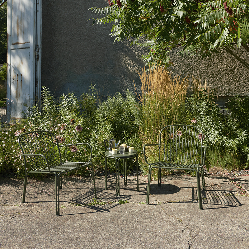 La collection Thorvald présentée par And Tradition célèbre la vie en plein air avec des silhouettes sculptées et un jeu d'ombre et de lumière. C’est une version moderne des lignes lyriques de l’artiste néoclassique le plus estimé du Danemark, Bertel Thorvaldsen, et des motifs fascinants de son musée éponyme. La structure de Thorvald juxtapose un piètement filiforme et un plateau en acier pour une silhouette équilibrée permettant un placement facile dans la nature et en milieu urbain.
