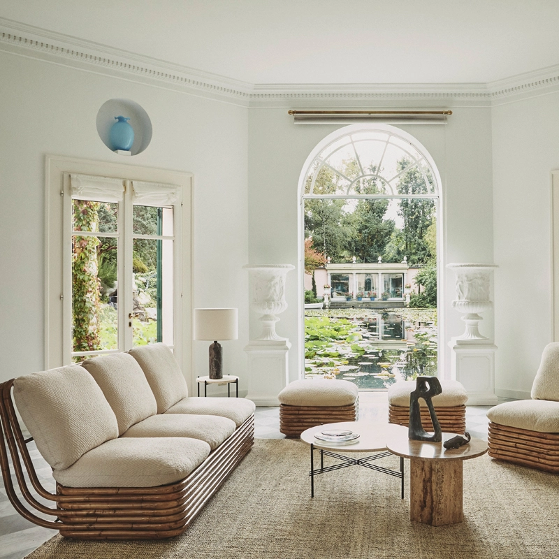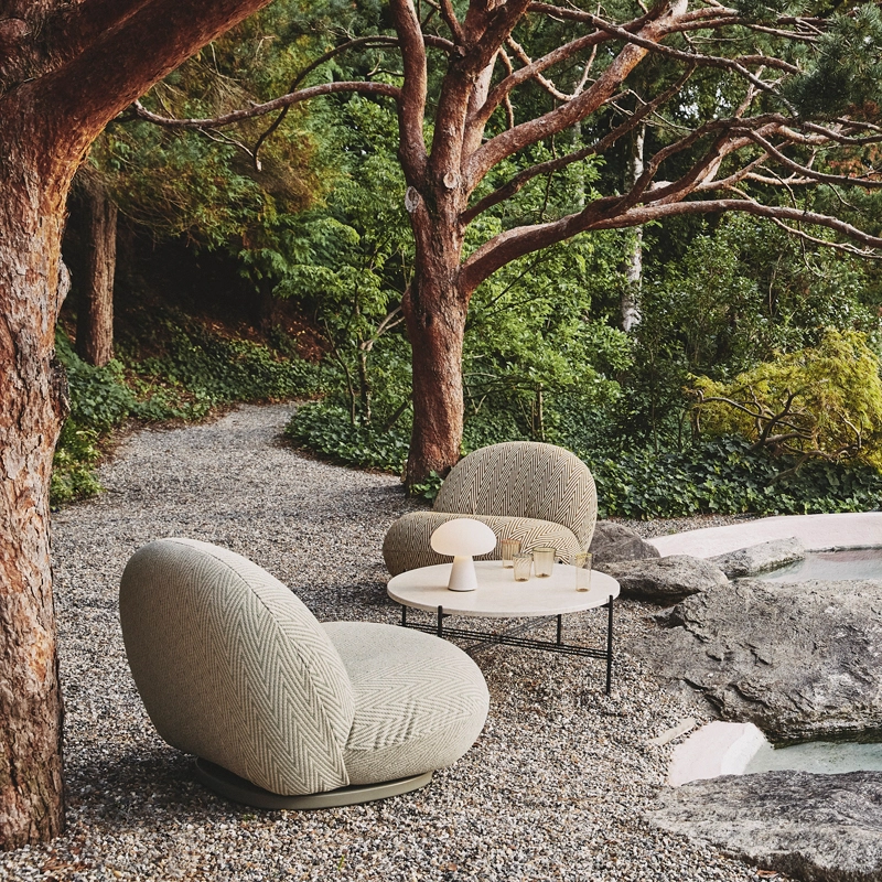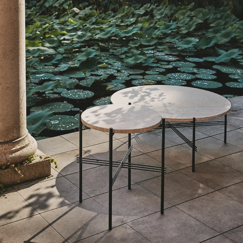 Créée par GamFratesi en 2014, la collection TS est déjà célèbre et appréciée des amateurs de design pour sa capacité à s’intégrer dans tous les environnements. Désormais, la version table basse et guéridon avec base noire se déclinent avec un traitement pour l’extérieur. Les plateaux luxueux, en magnifique travertin blanc veiné, complètent les piètements géométriques en acier inoxydable époxy, permettant à l’esthétique élégante de la collection de passer à l’extérieur. La collection TS Outdoor, déclinée en deux tailles, affirme un look sculptural et sophistiqué, grâce à ses pieds effilés caractéristiques, contrastant avec le plateau massif. Editées par Gubi, les tables TS allient des lignes classiques et contemporaine, avec des matériaux de qualité exceptionnelle. Elles sont à la fois pratiques et ludiques, pouvant créer différentes compositions en fonction du nombre de tables et des tailles associées. Les plateaux en travertin des TS Outdoor ont reçu un traitement qui comble les crevasses naturelles de la pierre, pour créer une surface durable, capable de résister aux éléments extérieurs et d’être facilement nettoyée. Comme c’est un matériau naturel, le travertin prendra une belle patine avec le temps.  Les tables TS Outdoor Gubi peuvent être laissées dehors, mais doivent être rentrées à l’intérieur en cas de chaleur extrême ou de gel, pour éviter les dommages causés par les chocs thermiques.