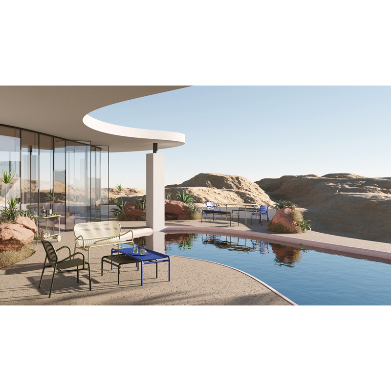 Avec Week-End, la marque française Petite Friture pose son regard singulier sur l’été et propose avec le studio Brichet-Ziegler une approche graphique et contemporaine du mobilier de jardin. La collection Week-End est une gamme de mobilier outdoor complète. Les couleurs précises sélectionnées pour cette collection marquent seules ou en combinaison les lignes d’horizon d’un balcon, d’une terrasse ou d’un jardin. Reprenant les bandes caractéristiques de la collection, cette table basse est disponible en plusieurs couleurs comme le noir, jaune, vert jade … La mise en couleurs de la collection Week-end, de Petite Friture, en peinture poudre époxy anti-UV grainée garantit un maintien impeccable des teintes au cours du temps. La table basse design proposée par Petite Friture, a été conçue avec l’obsession de tirer le meilleur parti des matériaux et des techniques de réalisation à la disposition des designers. Réalisée en aluminium, matériau sélectionné pour sa légèreté et sa résistance aux intempéries, la collection Week-End allie confort esthétique et sens pratique.