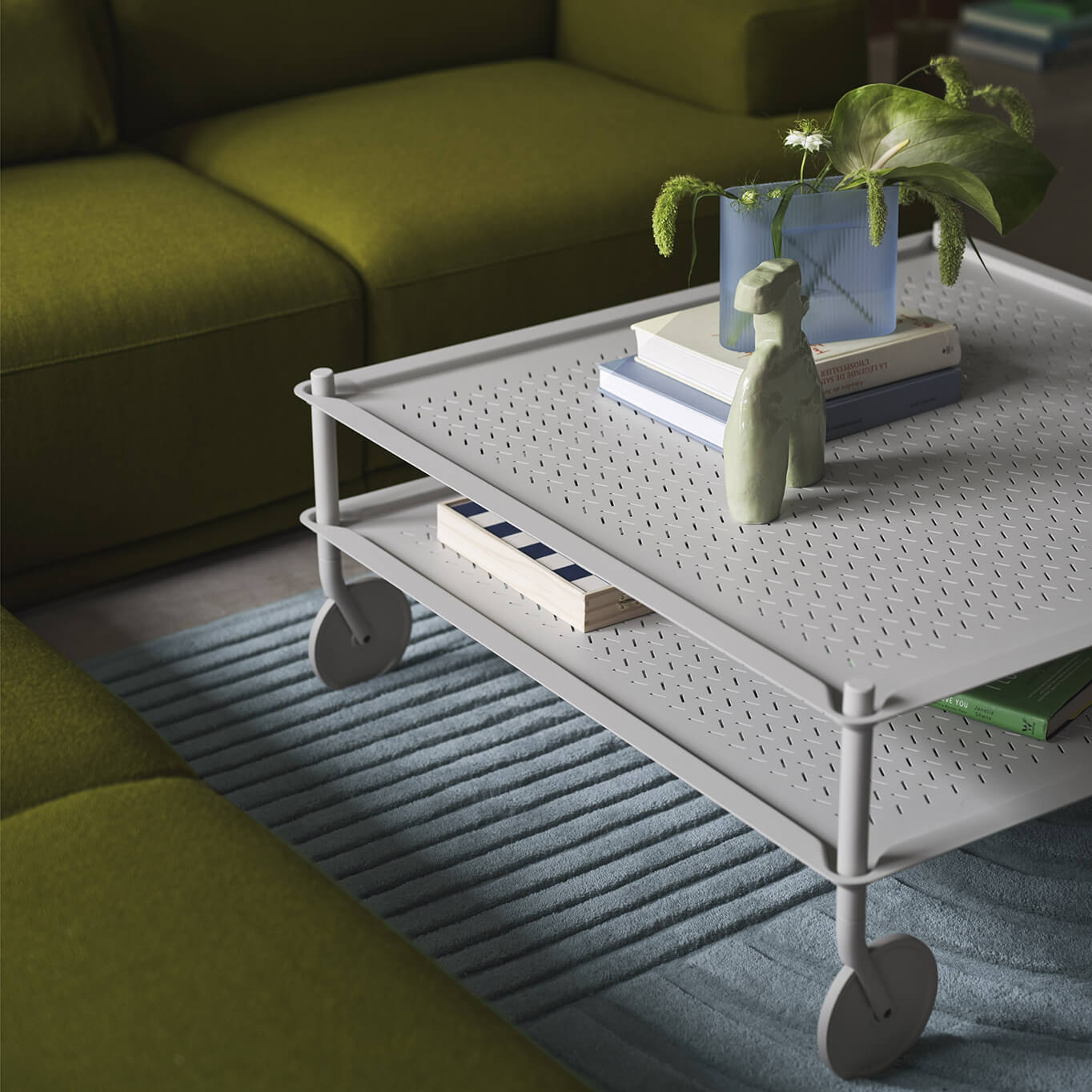 La table basse Flow créée par Normal Studio pour Muuto incarne l’élégance industrielle et le design pratique. Conçue à partir de feuilles de métal moulé, elle offre une structure unique à deux couches et des perforations qui la rendent légère et aérée. La table basse Flow est équipée de roues en caoutchouc et en acier, ce qui lui permet de se déplacer doucement et silencieusement. Polyvalente, elle peut être placer à l’intérieur comme à l’extérieur. Elle propose deux couleurs différentes permettant de l’accorder à tous les intérieurs. Légère et facile à déplacer, il est possible de la repositionner selon les envies et besoins. La table basse Flow de Muuto est donc une table élégante, fonctionnelle et légère, ce qui fait d’elle une pièce indispensable.