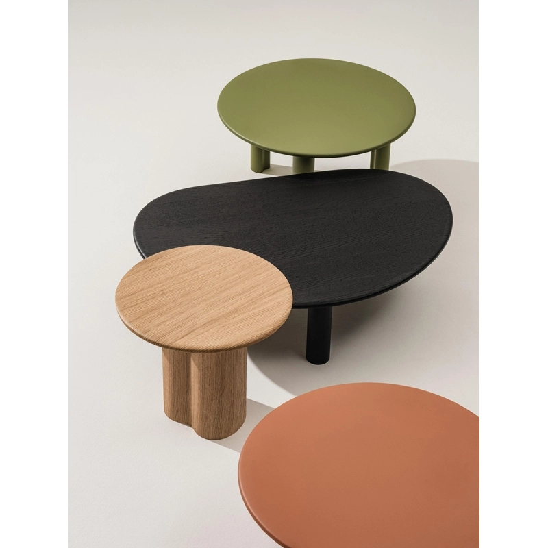 Editée par Arper, Ghia se démarque par ses formes douces et sculpturales, ainsi que par ses matériaux tactiles inspirés de la nature. Cette collection de tables basses insuffle un sentiment d'harmonie et de calme dans tous les espaces, grâce à un équilibre entre formes géométriques organiques.  Grâce à son expressivité et ses nombreuses versions disponibles, la collection de tables basses Ghia Arper s'adapte naturellement à tout type d'environnement, des espaces d’accueil aux espaces résidentiels, des zones lounge aux salons. Deux types de piètement, proposés en 3 hauteurs différentes, soutiennent des plateaux de forme ronde ou organique de dimensions variées, disponibles en MDF, bois et terrazzo vénitien. Ghia permet de créer des compositions très personnelles en combinant différents modèles et en mélangeant les couleurs et les finitions. La collection Ghia Arper est certifiée FSC.