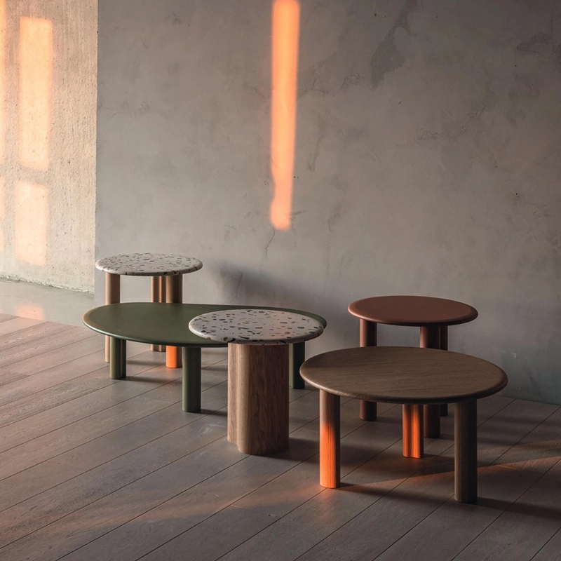 Editée par Arper, Ghia se démarque par ses formes douces et sculpturales, ainsi que par ses matériaux tactiles inspirés de la nature. Cette collection de tables basses insuffle un sentiment d'harmonie et de calme dans tous les espaces, grâce à un équilibre entre formes géométriques organiques.  Grâce à son expressivité et ses nombreuses versions disponibles, la collection de tables basses Ghia Arper s'adapte naturellement à tout type d'environnement, des espaces d’accueil aux espaces résidentiels, des zones lounge aux salons. Deux types de piètement, proposés en 3 hauteurs différentes, soutiennent des plateaux de forme ronde ou organique de dimensions variées, disponibles en MDF, bois et terrazzo vénitien. Ghia permet de créer des compositions très personnelles en combinant différents modèles et en mélangeant les couleurs et les finitions. La collection Ghia Arper est certifiée FSC.