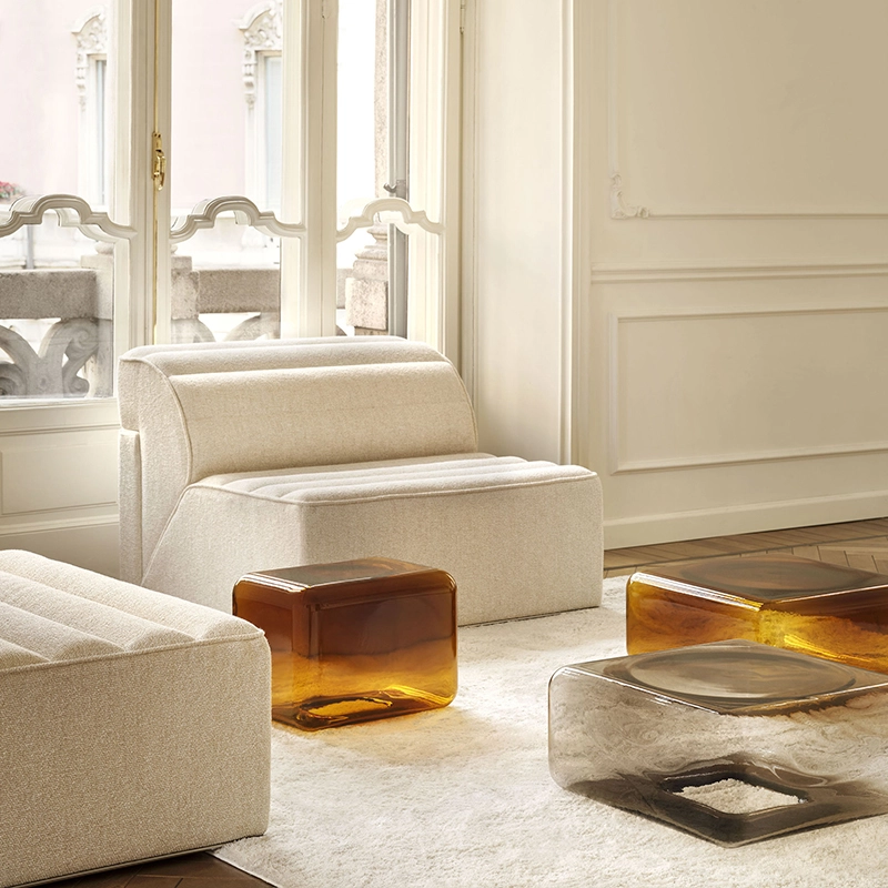 Lokum est une collection de tables basses où le matériau, la couleur et la lumière fusionnent dans un jeu de matières intense. Editée par Acerbis, Lokum est une collection qui incarne cette élégance des formes pures, rehaussée par une utilisation artisanale du verre soufflé. Sabine Marcelis, connue pour son utilisation poétique et précise des surfaces réfléchissantes et des nuances de couleurs irisées, a créé une collection d’une beauté éthérée générant d’extraordinaires jeux d’ombre et de lumière.  La petite table en verre Lokum Acerbis est disponible en version rectangulaire et carrée dans deux teintes différentes et offre une grande flexibilité d’utilisation, tant en élément unique qu’en association avec d’autres modèles pour créer des configurations uniques et personnalisées dans le salon.