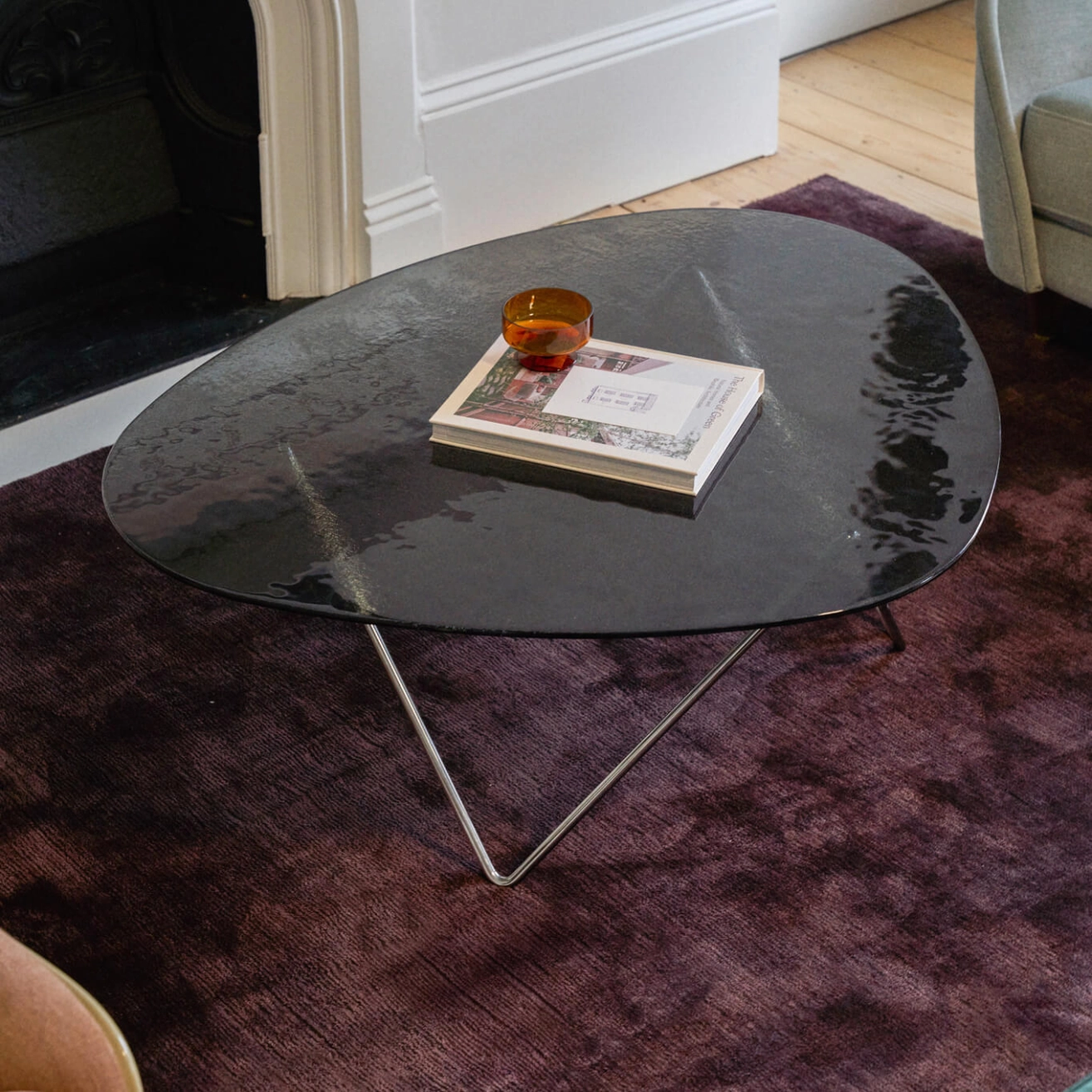 Table basse PEDRERA Verre structuré fumé / Chrome GUBI