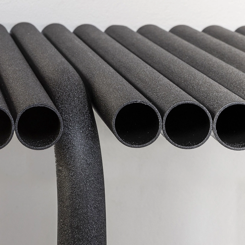 La collection Pipelines créée par Bcsxy et éditée par la marque Mogg comprend un ensemble de tables basses et une console en métal, qui se caractérisent par un design graphique puissant et une forte personnalité.  Pipelines se constitue d’un plateau qui associe des tubes métalliques peints, et recourbés par endroits pour obtenir un ou plusieurs pieds rigides. Les surfaces créées par le rythme répétitif des tubes de Pipelines créent un élégant contraste entre simplicité et solidité.  Qu’il s’agisse de la console à fixer au mur ou des tables basses carrées et rectangulaires, la collection Pipelines saura meubler vos intérieurs avec une grande sophistication.