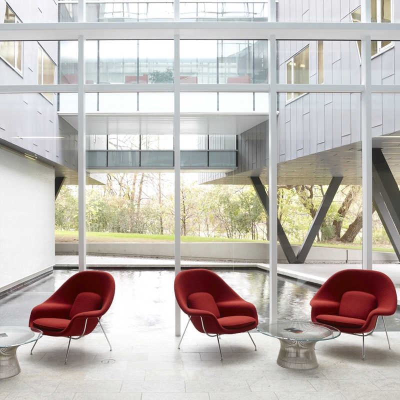 Knoll, marque emblématique du mobilier design contemporain, incarne depuis plus de 80 ans l’alliance parfaite entre innovation, modernisme et esthétisme intemporel. Fondée en 1938 aux États-Unis par Hans et Florence Knoll, la maison s’est imposée comme une référence mondiale du mobilier design d'exception. Parmi ses créations les plus iconiques figurent la table Saarinen et la chaise Tulip, imaginées par le célèbre designer Eero Saarinen, mais aussi la collection Bertoia, le lounge Platner et le légendaire fauteuil Barcelona.