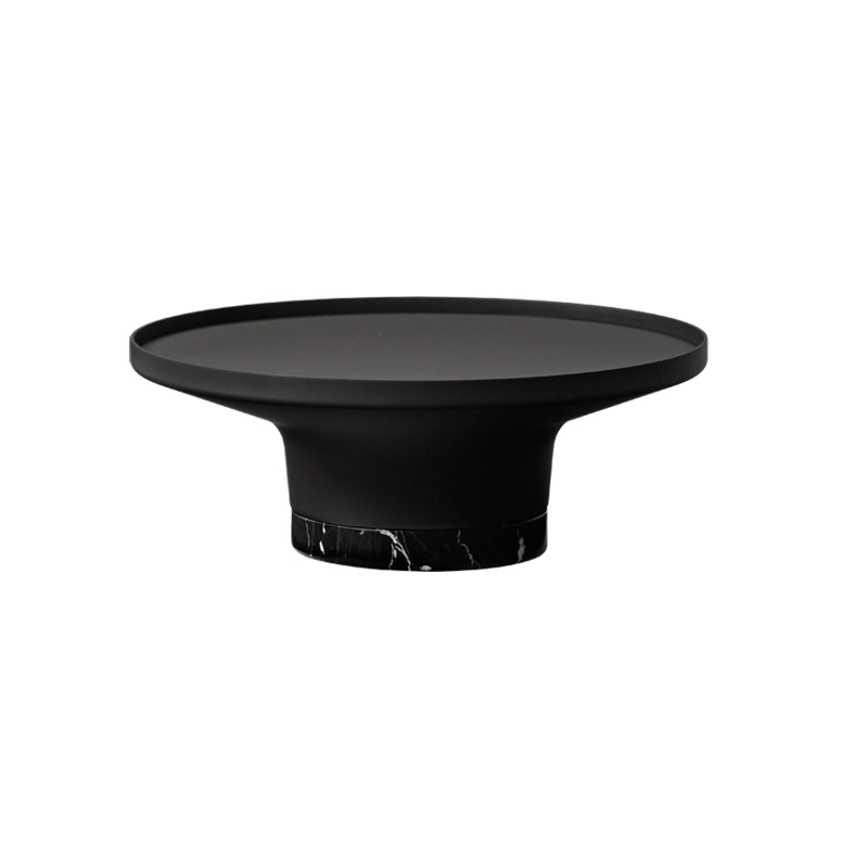 plateau stratifié noir, base aluminium noir et marbre marquina noir