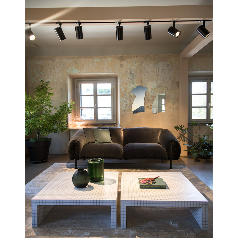 La table basse Quaderna se distingue par ses dimensions généreuses et apporte une forte personnalité dans tous les salons.