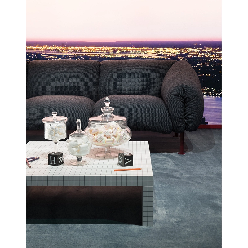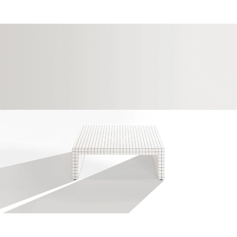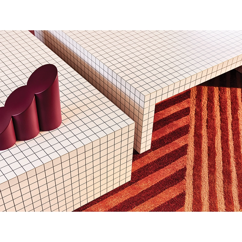 Les produits de la collection Quaderna sont le résultat d’un processus hautement industrialisé et en même temps d’un grand savoir-faire artisanal. Le stratifié à carreau a été créé spécialement sur la base du design de Superstudio et présente un quadrillage avec un entraxe de 3 cm, réalisé par impression numérique. Ce stratifié est ensuite appliqué manuellement, nécessitant une grande précision et plusieurs heures de travail pour chaque pièce. La convergence des lignes du motif détermine l’homogénéité des surfaces et confère au meuble une forte personnalité.