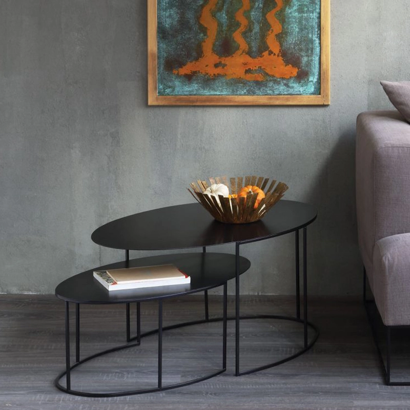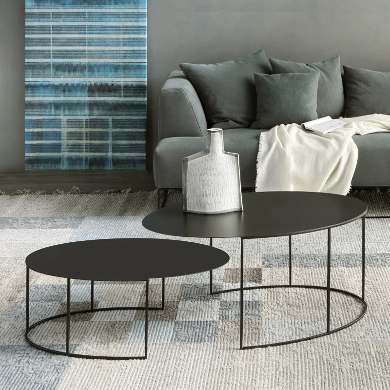 Slim Irony Oval est une table basse déclinées en deux tailles qui peuvent s'associer pour former une composition très graphique. La petite table a été conçue pour se glisser sous la grande, à la manière des tables gigognes. Chaque table peut également être utilisée seule en table d'appoint ou bout de canapé par exemple. Réalisées en acier noir cuivré, ces tables basses Zeus sont très fines et ultra aériennes.