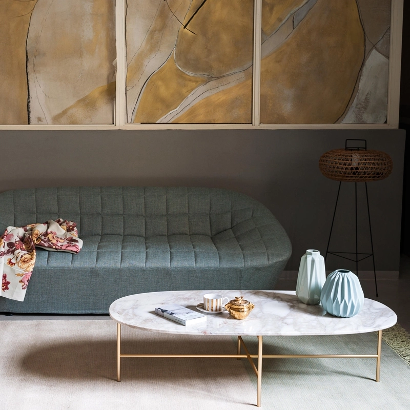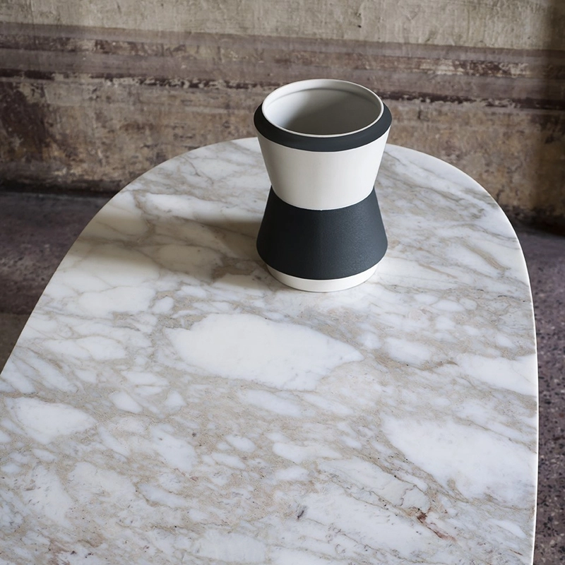 table basse design ou table d’appoint et déclinée en Sahara noir ou en Calacatta brillant, la