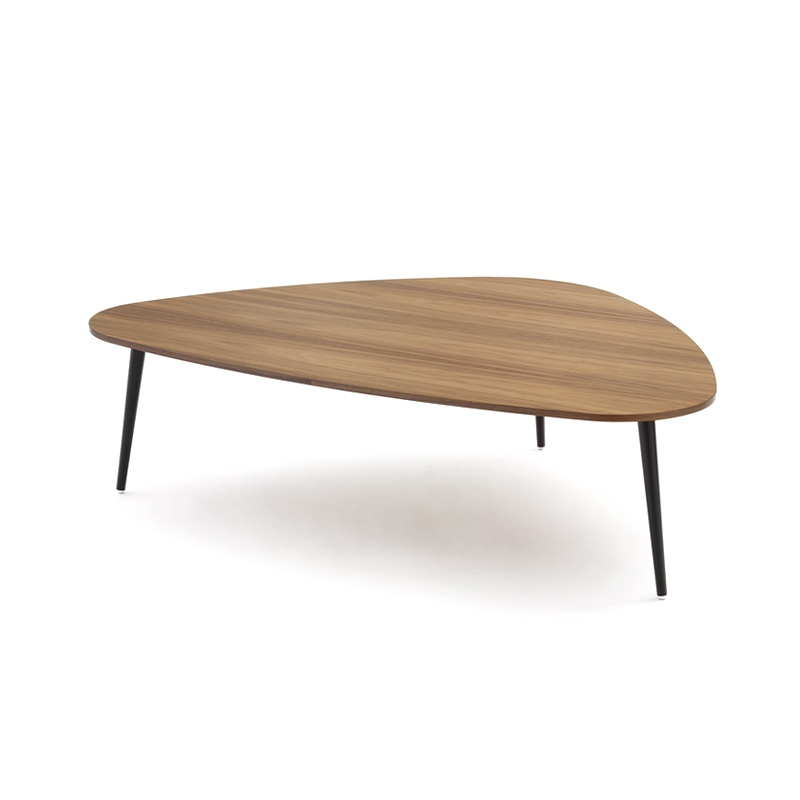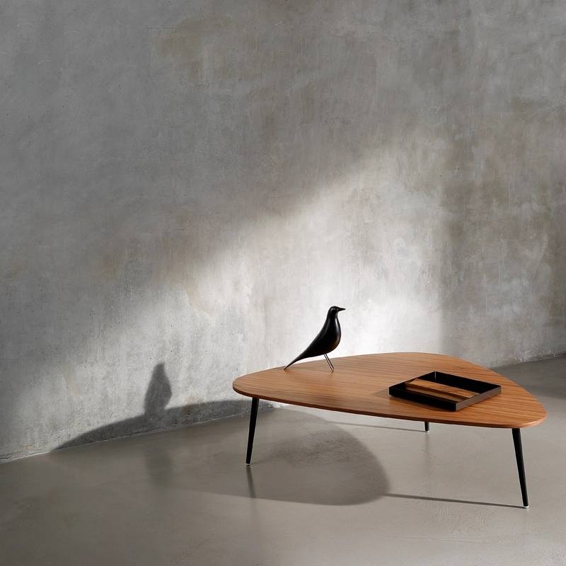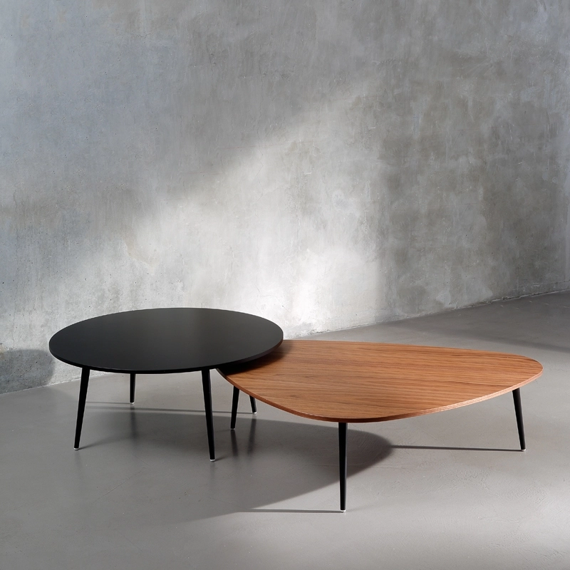 tables d'appoint créées par le nouvel éditeur français COEDITION. La collection se distingue par des lignes sobres et légères, alliant tradition et modernité. Chaque petite table est équipée d'un jeu de trois ou quatre pieds fins en métal, à la forme légèrement conique. Ces derniers sont associés à un plateau rond, ovale ou triangulaire, réalisé en medium plaqué noyer naturel ou laqué, et disponible dans différentes tailles. Les versions « tables d'appoint » se déclinent en différentes hauteurs tout comme les tables basses, ce qui permet d'associer ainsi plusieurs modèles entre eux pour créer une composition très personnelle qui s'adapte à votre salon.