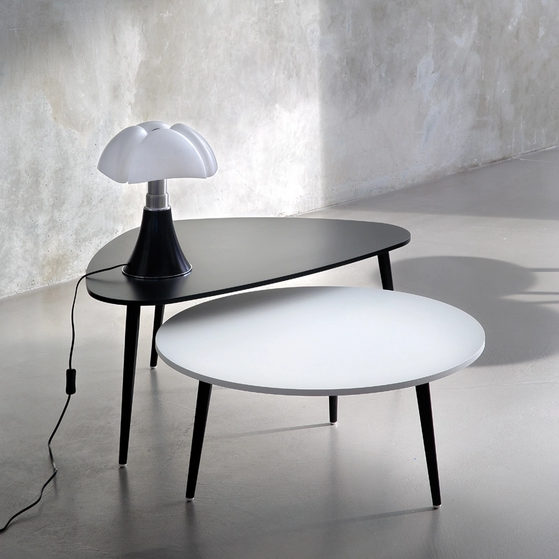 Soho est une série de tables basses et tables d'appoint créées par le nouvel éditeur français COEDITION. La collection se distingue par des lignes sobres et légères, alliant tradition et modernité. Chaque petite table est équipée d'un jeu de trois ou quatre pieds fins en métal, à la forme légèrement conique. Ces derniers sont associés à un plateau rond, ovale ou triangulaire, réalisé en medium plaqué noyer naturel ou laqué, et disponible dans différentes tailles. Les versions « tables d'appoint » se déclinent en différentes hauteurs tout comme les tables basses, ce qui permet d'associer ainsi plusieurs modèles entre eux pour créer une composition très personnelle qui s'adapte à votre salon.