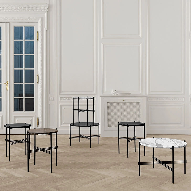 La collaboration entre le studio GamFratesi et la marque Gubi incarne la rencontre du design italien et l'inspiration danoise. L'approche minimaliste et l'artisanat traditionnel des pays scandinaves s'associent à un concept fort et émotionnel. GamFratesi joue sur les contrastes de matériaux et de formes avec un plateau en marbre reposant sur un piètement fin en métal noir. Le plateau se décline en quatre différents marbres : blanc de Carrare, noir Marquina, vert Guatemala et marron Emperador. Graphique et élégante, la table basse TS est idéale seule ou en composition en jouant sur les tailles et les couleurs pour créer un ensemble original et personnel dans le salon.