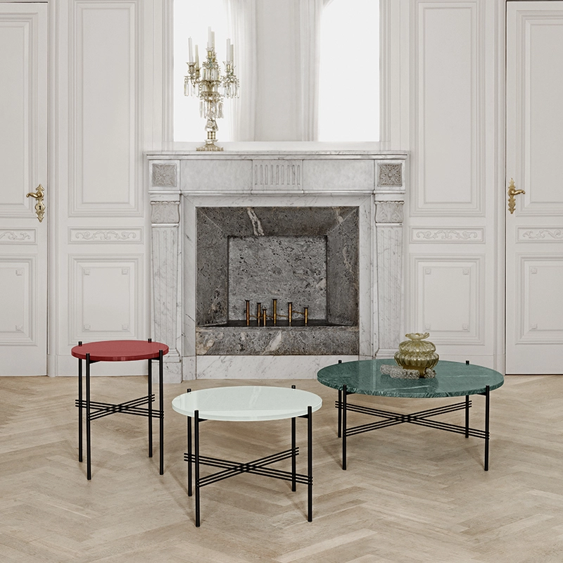 La collaboration entre le studio GamFratesi et la marque Gubi incarne la rencontre du design italien et l'inspiration danoise. L'approche minimaliste et l'artisanat traditionnel des pays scandinaves s'associent à un concept fort et émotionnel. GamFratesi joue sur les contrastes de matériaux et de formes avec un plateau en marbre reposant sur un piètement fin en métal noir. Le plateau se décline en quatre différents marbres : blanc de Carrare, noir Marquina, vert Guatemala et marron Emperador. Graphique et élégante, la table basse TS est idéale seule ou en composition en jouant sur les tailles et les couleurs pour créer un ensemble original et personnel dans le salon.