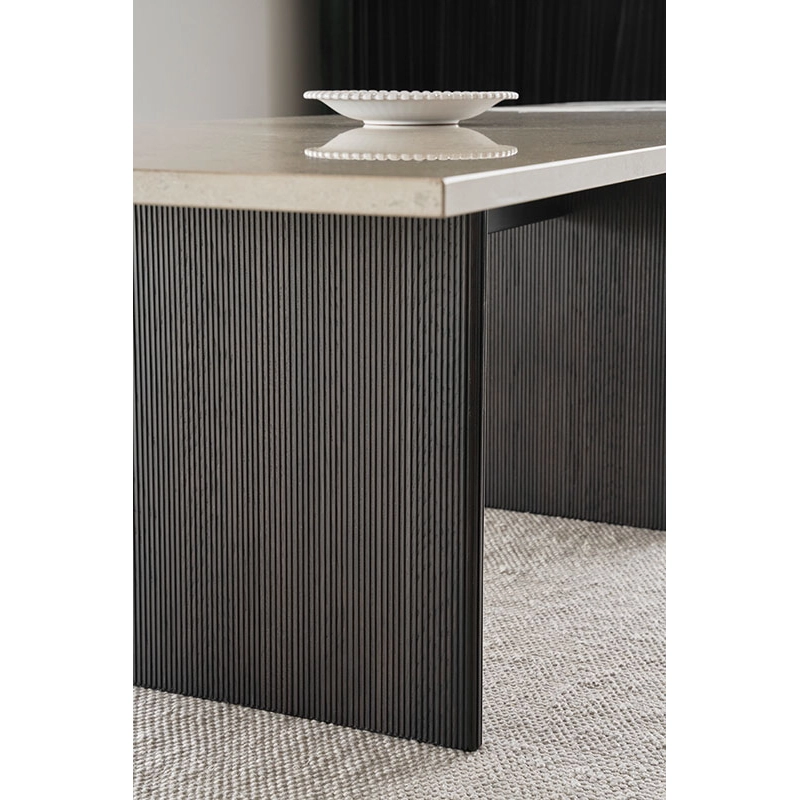 Plateau calcaire Jura gris-bleu ou marbre Pietra gris, pieds en chêne teinté foncé ou clair