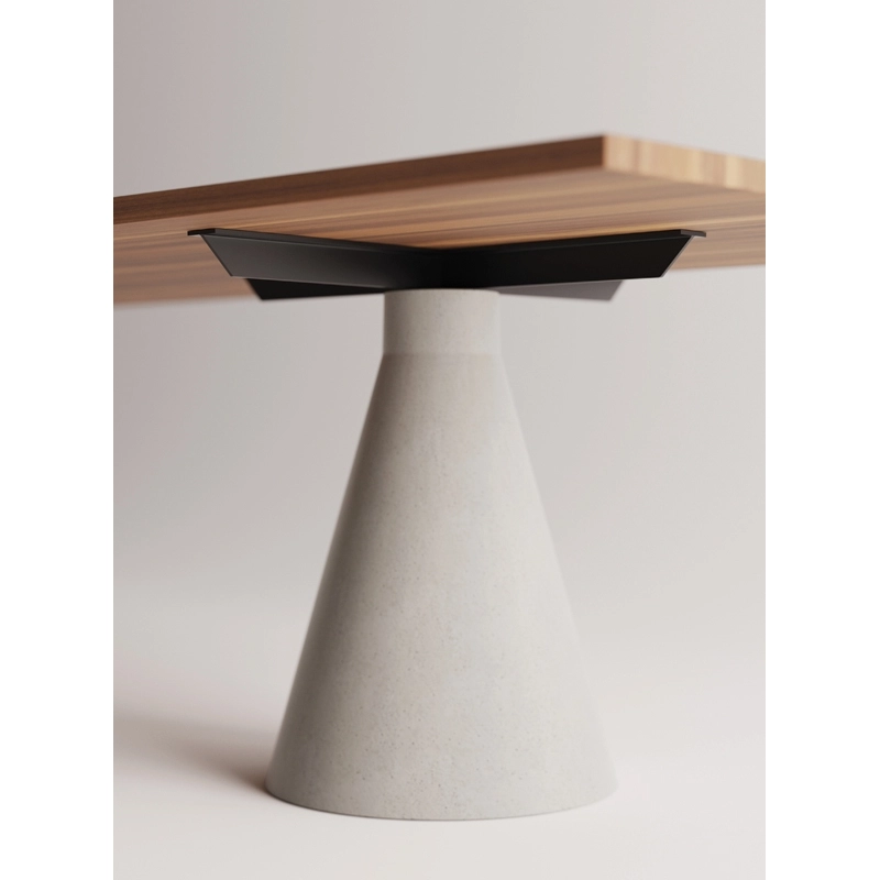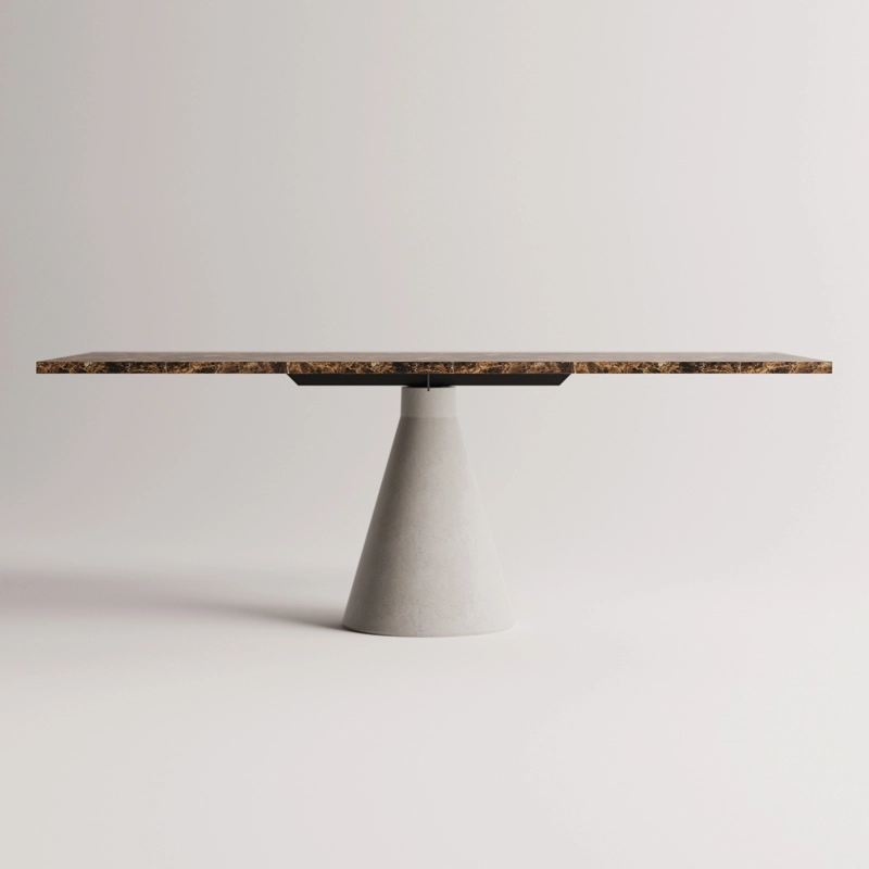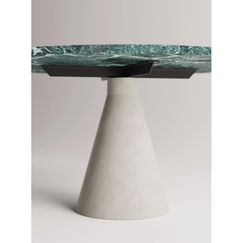 Conçue spécifiquement pour le projet du Club culturel du même nom à La Chaux-de-Fonds, la table Club 44 n’a jamais été mise en production jusqu’à présent ; à l’exception d'un petit nombre réalisé pour le Club suisse au cœur du quartier horloger du pays. La table Club 44 se caractérise par une construction en trois pièces dans laquelle chaque élément exprime pleinement ses caractéristiques et sa poésie: le volume conique massivement stable de la base en béton, la surface graphique du plateau en marbre, la structure technique en acier qui uni élégamment les différents éléments. Tous contribuent à la présence emblématique de la table qui reprend les thèmes récurrents de l’œuvre de Mangiarotti.