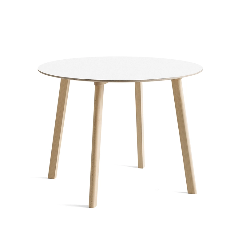 Faisant partie de la famille Copenhague dessinée par Ronan et Erwan Bouroullec pour Hay, la table CPH Deux 220 partage le même profil épuré et l’identité forte qui caractérisent toute la collection. Avec ses pieds effilés, son plateau rond et ses dimensions compactes, la table CPH Deux 220 s’intègre aussi bien dans les espaces domestiques que dans les environnements publics, comme les bureaux et les cafés. Le plateau est stratifié à base de nanotechnologie, ce qui permet une surface ultra mate, douce au toucher, anti-traces de doigts et facile à nettoyer. Le piètement est disponible en hêtre non traité ou en chêne avec un vernis à base d’eau.