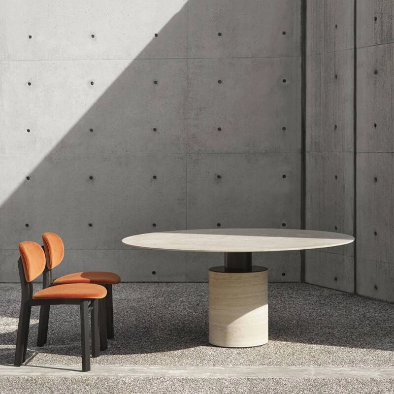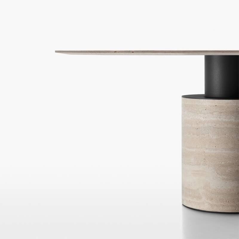 Meuble design à la silhouette monolithique, les pièces principales de Creso sont soigneusement taillées dans du marbre travertin. Le pied cylindrique parfaitement régulier de la table s’aligne avec le plateau dans une géométrie optimale pour ne former qu’une seule et même structure solide et vigoureuse.
