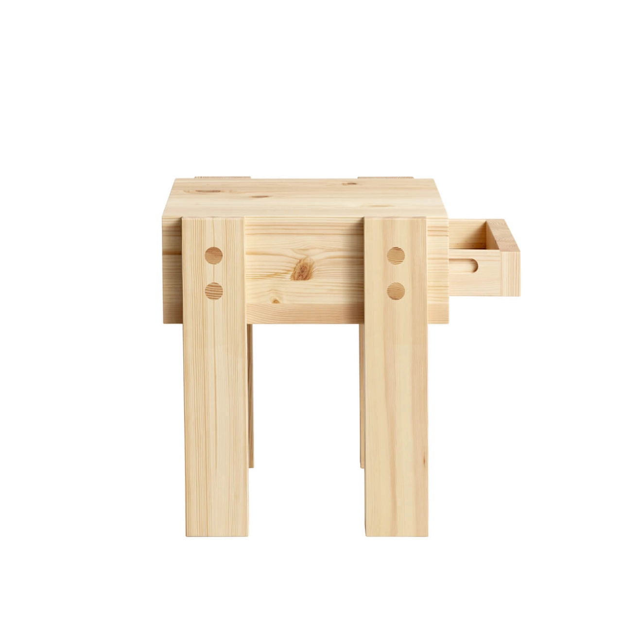 La table d'appoint Stilts, imaginée par Philippe Malouin pour Vaarnii, se distingue par son design épuré et sa structure intuitive. Inspirée de l’architecture vernaculaire des cabanes au bord des lacs, commune tant au Québec qu’en Finlande, elle se caractérise par un volume flottant élevé au-dessus du sol. Cette forme simple mais fonctionnelle rejette les solutions trop complexes pour se concentrer sur l’essentiel, à l’image de ces constructions informelles qui privilégient l’efficacité sans artifice. Le design de la table d’appoint Stilts repose sur une combinaison habile : un tiroir boîte s’intègre dans un espace central, soutenu et entouré par des pieds qui en assurent la stabilité. Fabriquée en pin finlandais, cette table allie robustesse et naturalité, avec des matériaux honnêtes qui mettent en valeur la beauté brute du bois. À la fois pratique et esthétique, la table d'appoint Stilts de Vaarnii trouve sa place aussi bien dans un intérieur moderne que dans un espace plus naturel.
