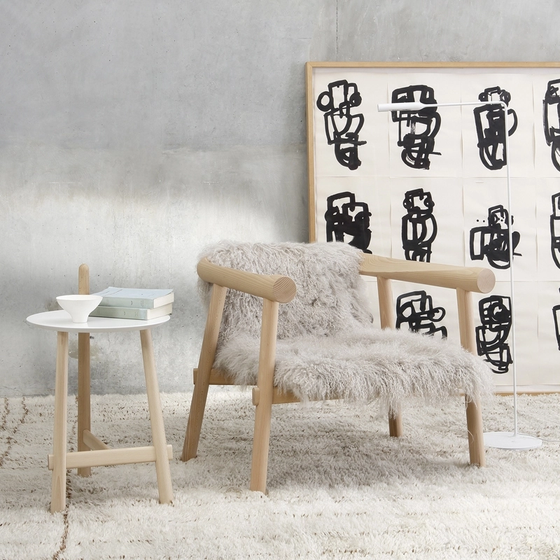 La designer Patricia Urquiola collabore avec le nouvel éditeur français COEDITION et dessine la collection Altay. Celle-ci allie tradition et modernité à travers notamment un petit guéridon composé d'une structure tripode réalisée en hêtre massif naturel ou laqué noir. Le piètement est surmonté d'un plateau rond en medium laqué noir ou blanc. Un des pieds, plus long que les autres, dépasse au-dessus du plateau et forme ainsi une poignée pratique pour déplacer la petite table partout dans la maison. Avec ses lignes pures et ses matériaux naturels de grande qualité, Altay est un guéridon design qui s'intègre aussi bien dans le salon en bout de canapé, que dans une chambre pour faire office de table de chevet.