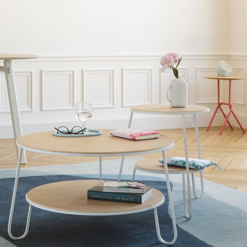 Les designers Amandine Chhor et Aïssa Logerot collaborent avec la marque Hartô pour créer deux petites tables élégantes et fonctionnelles : Eugénie et Anatole. Elles sont constituées d'une structure en métal, soutenant deux plateaux en bois. Le plateau inférieur, légèrement plus petit, permet de ranger des objets, qui restent accessibles facilement. La table basse Eugénie s'impose avec grâce dans le salon, tandis que le guéridon Anatole peut servir aussi bien de bout de canapé, de table de chevet ou de table d'appoint.