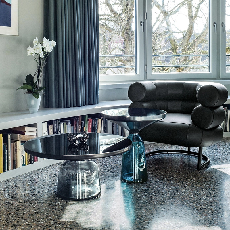 La collection Bell Table de Sebastian Herkner bouleverse l'usage habituel des matériaux en associant le verre, matériau léger et fragile utilisé pour la base, et un plateau réalisé en métal, qui semble flotter au-dessus. Le piétement en verre teinté est soufflé de façon traditionnelle dans un moule en bois. Avec sa présence sculpturale, Bell Side Table contraste avec le cadre en laiton tout en formant une unité harmonieuse rappelant les courbes d'une cloche. Grâce à ses surfaces réfléchissantes et ses matériaux opposés, la Bell Side Table ajoute une touche raffinée et délicate dans le salon. Elle célèbre la beauté des matériaux avec leurs couleurs et leurs formes, associées aux qualités d'un travail artisanal rigoureux. La table basse Bell Coffee et la table d'appoint Bell Side sont des pièces uniques et fragiles, chacune étant réalisée intégralement à la main et éditée par Classicon.